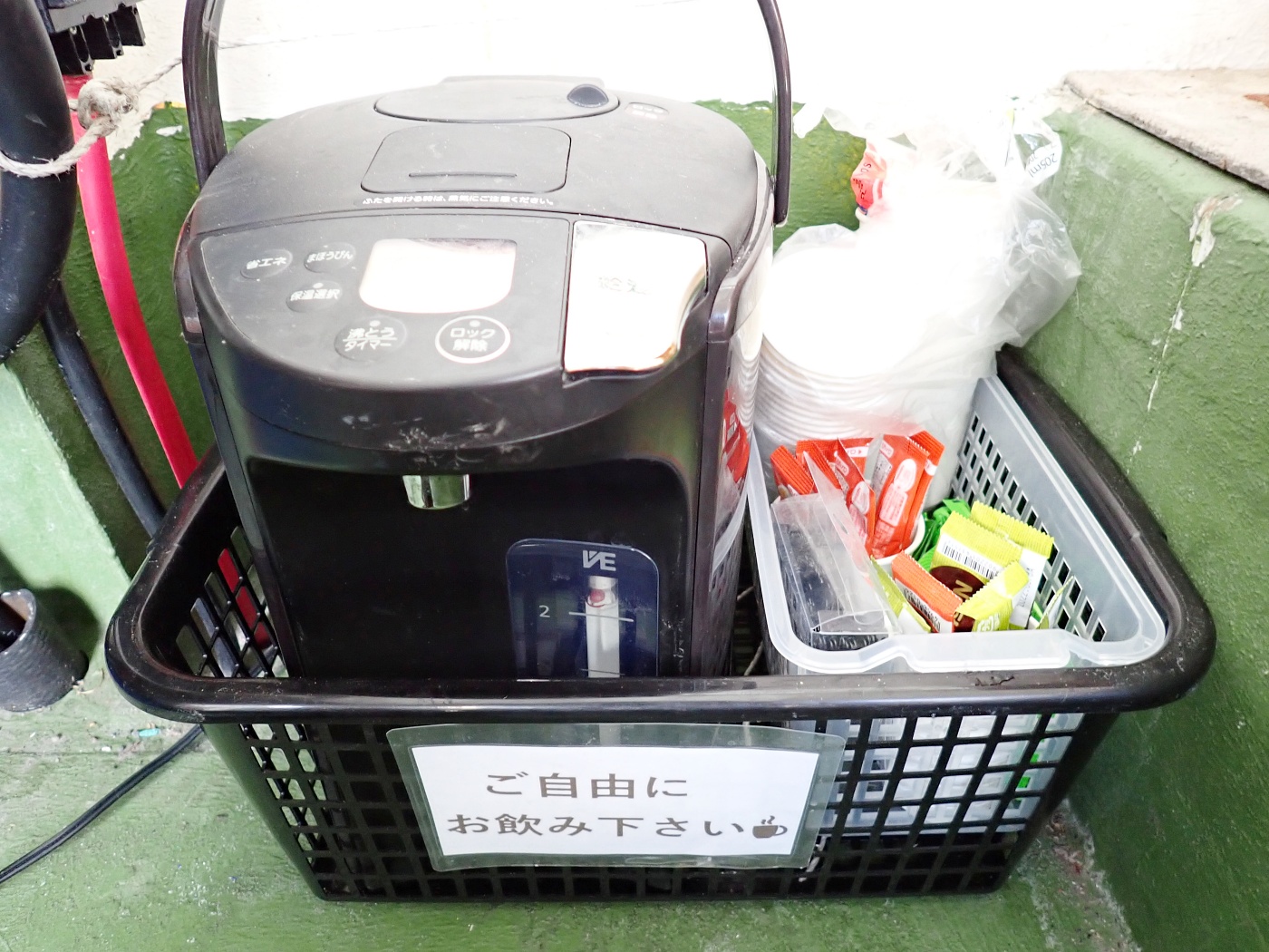 冬はキャビンに、電気ポットとインスタントコーヒーやお茶を置いてありますので遠慮なくどうぞ!カップラーメンを持参して、寒い船上で食べるのは最高😚